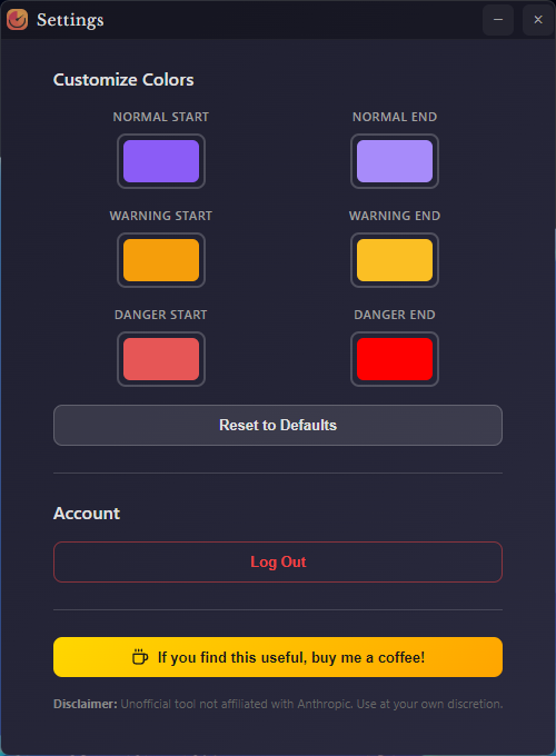 A beautiful, standalone Windows desktop widget that displays your Claude.ai usage statistics in real-time.