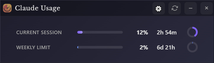 A beautiful, standalone Windows desktop widget that displays your Claude.ai usage statistics in real-time.